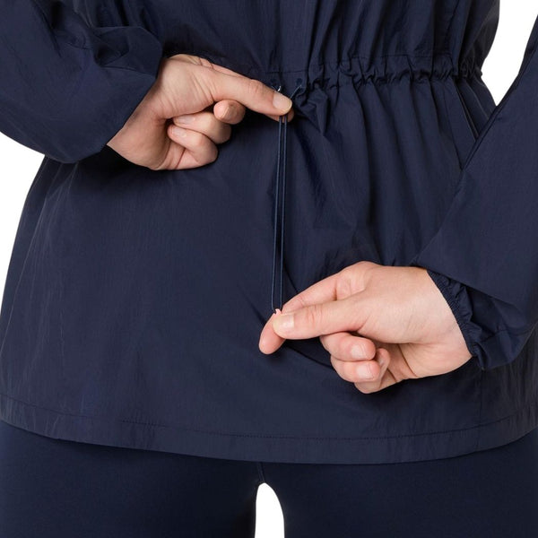 There's also a hem cord fit adjustment cord on the hood that helps keep it in place when you're in motion.