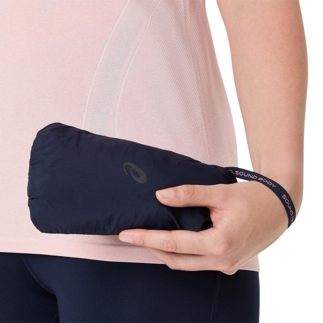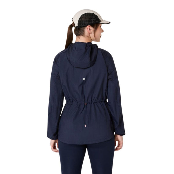 It's a versatile jacket designed to help shield against rain and wind and can be easily removed and packed into the side pocket during your run.