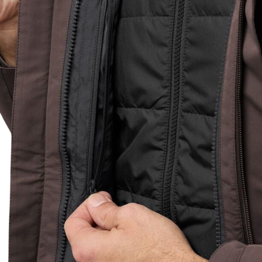 If you’re planning to go hiking in cold, wet weather, don’t leave home without your ROMBERG 3IN1 jacket. The outer jacket is made of waterproof, windproof and breathable TEXAPORE CORE and is very robust. The articulated elbows provide good freedom of movement. The hood is detachable and fully adjustable. Three outer pockets and a secret pocket offer plenty of room for hiking essentials. The windproof and water repellent inner jacket has a PRIMALOFT BLACK RISE fill made of recycled synthetic fiber.