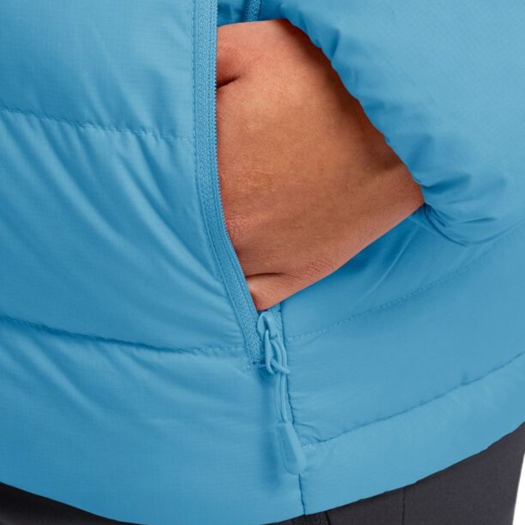 Premium warmth made with recycled materials, the ATHER DOWN HOODY combines a windproof and water resistant TEXASHIELD PRO DOUBLE RIPSTOP fabric with 700 fill ALLIED FEATHERS responsibly sourced down. Use Track my Down to discover the origin and production steps of your down garment. Adjustable hood, hem, and elasticated cuffs let you seal out the cold, and 2 hand pockets let you keep valuables accessible. A stowaway pocket makes packing easy.