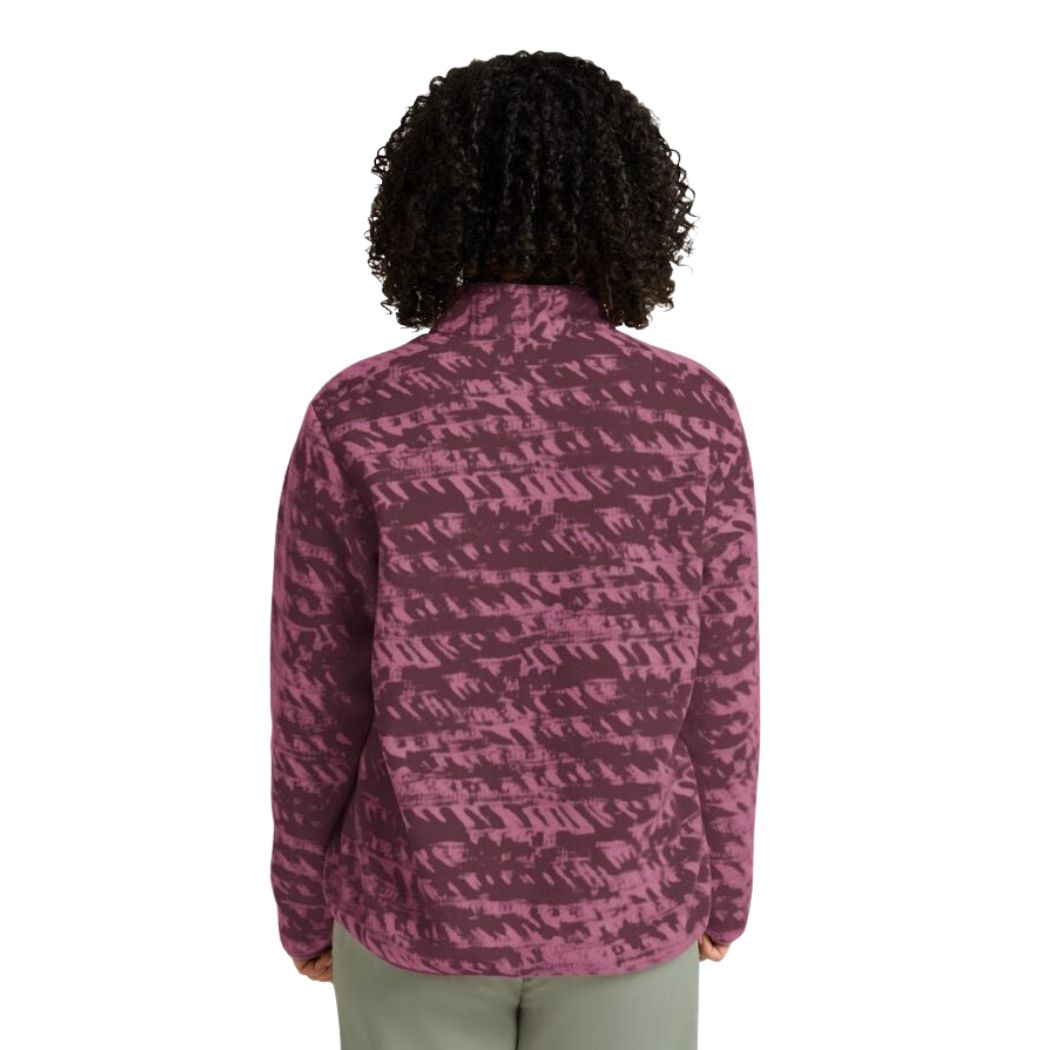 The allover print of the BIG SKY HALF ZIP gives it a classic style inspired by mountain landscapes. It's made from a warm, soft 200 series recycled fleece that provides all the midlayer performance you need for any winter outdoor activity but looks great when sharing stories of the day's adventure around a fireplace.