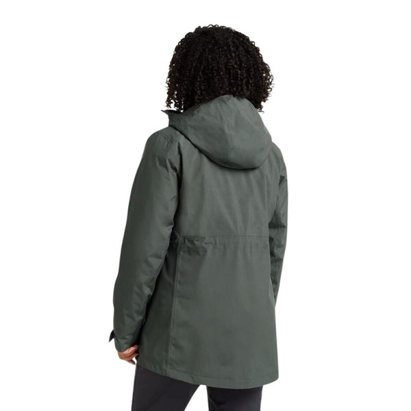 The ICECAPE 3IN1 DOWN JACKET blends premium materials and technology with versatility for any kind of weather. With a longer, feminine silhouette, this 3IN1 jacket has a waterproof and breathable outer jacket made with TEXAPORE ECOSPHERE PRO fabric, waterproof zips for all-weather protection, and a 2-way center zip for fit and mobility adjustment on the go. The super cozy inner jacket features ALLIED RDS 700 FP down to keep you warm even in the coldest winter environments.