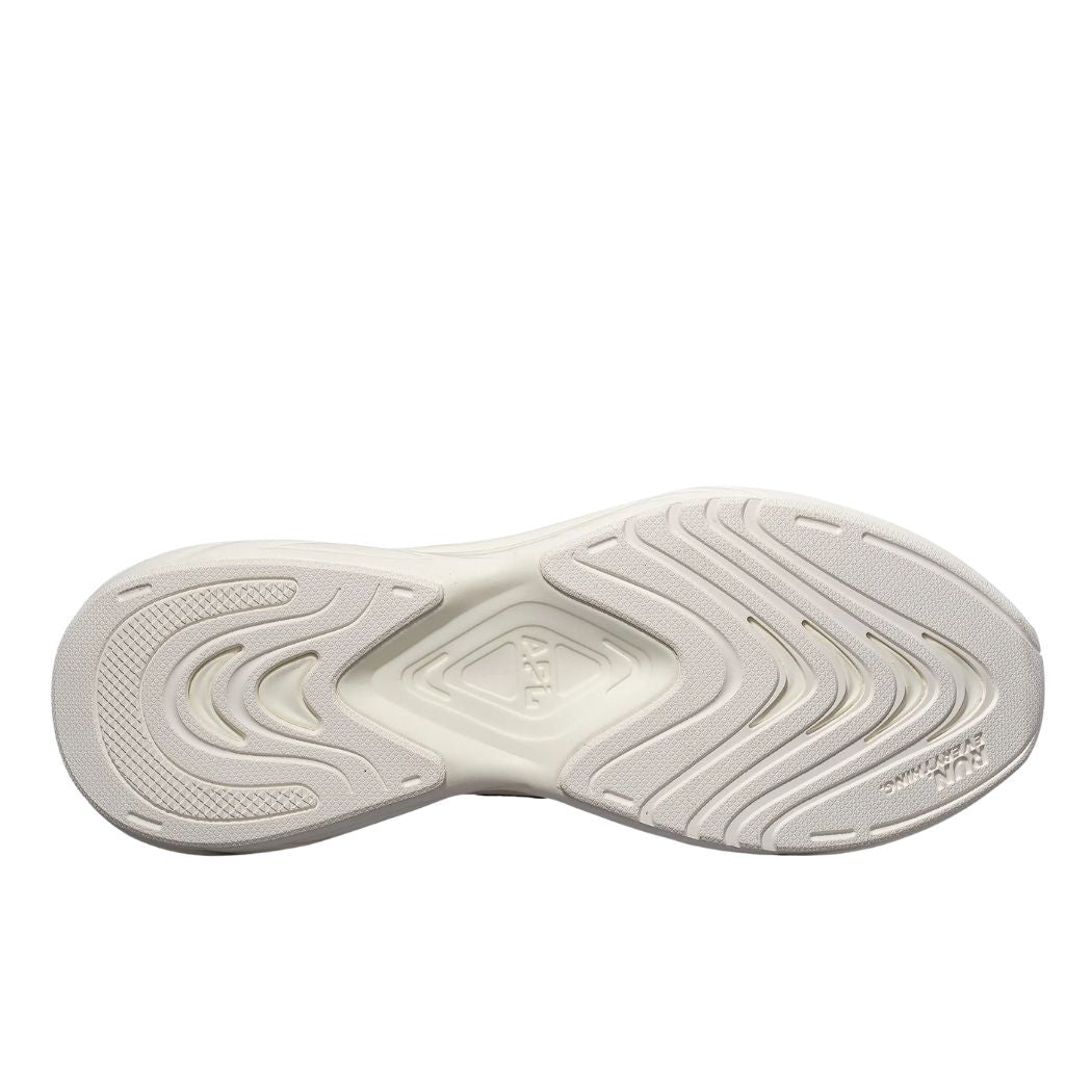 The APL FutureFoam™ running midsole compound was developed to provide exceptional compression, rebound and energy return through strenuous testing over the past 24 months. The midsole surface features horizontal channels carved by the wind to make each stride smoothly flow through the air. Additionally, a slanted, forward leaning shank plate is sandwiched between the two-piece midsole to help promote forward motion upon foot strike, and accelerate the gait cycle. The midsole sits atop a lightweight, two-piece rubber outsole that provides excellent traction along your journey.